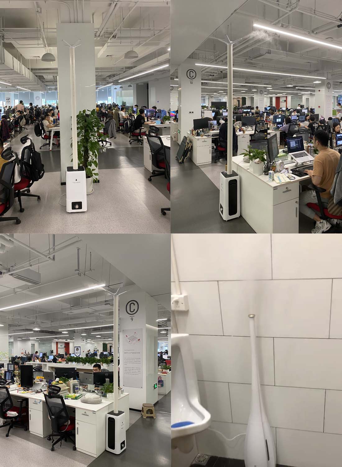 有贊科技由于扁平式架構(gòu),所有的員工都在同一個大型寫字樓里集中辦公,由于空間密閉并且人員非常集中,造成空氣質(zhì)量差,空氣中病菌也很多,所以在其辦公區(qū)域內(nèi)部署了大量的空氣霧化器+空氣凈化片,有效吸收空氣中的不良氣體并且起到了殺菌作用,從而大大的改善空氣質(zhì)量。同時在其衛(wèi)生間也布置了霧化器+空氣凈化片解決其臭味和細菌的問題。
